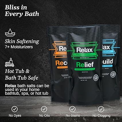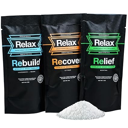 - THREE ATHLETIC BLENDS: The Relax Athletic Collection brings you Rebuild (Lavender + Musk), Recover (Citrus), and Relief (Mentha)—crafted for a luxurious soak that complements your active lifestyle and spa ritual and perfect size for single use.